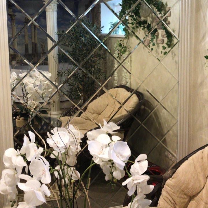Использована серебристая зеркальная плитка "вытянутый ромб".